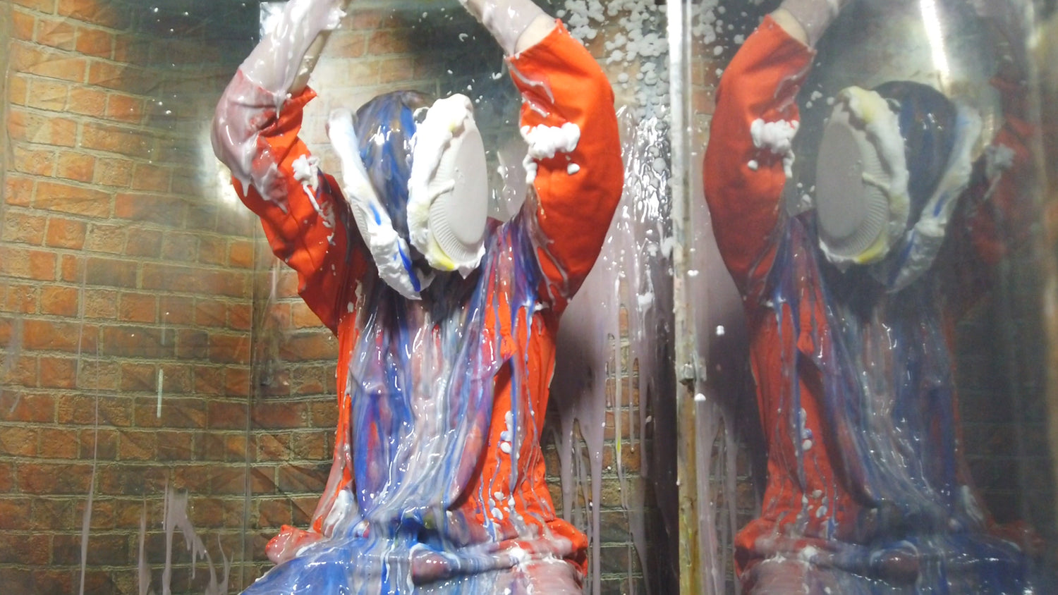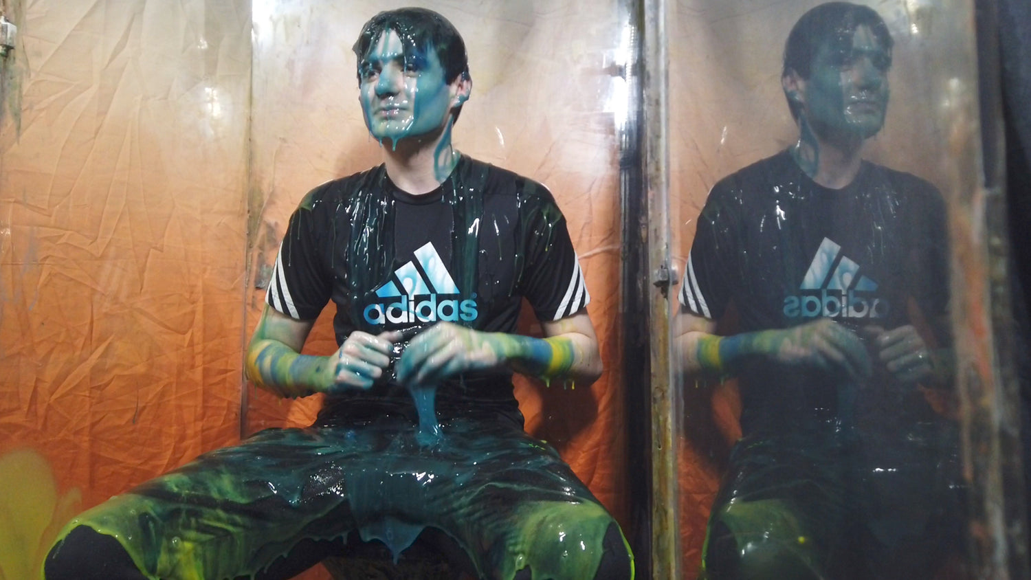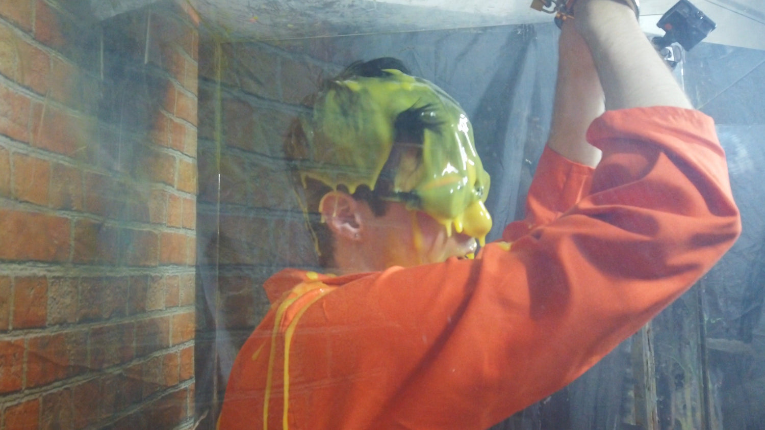 Why? He spends far too long singing in the shower and using up all the hot water, so let's see how he likes a few showers of a rather different kind... Showers of gunge!