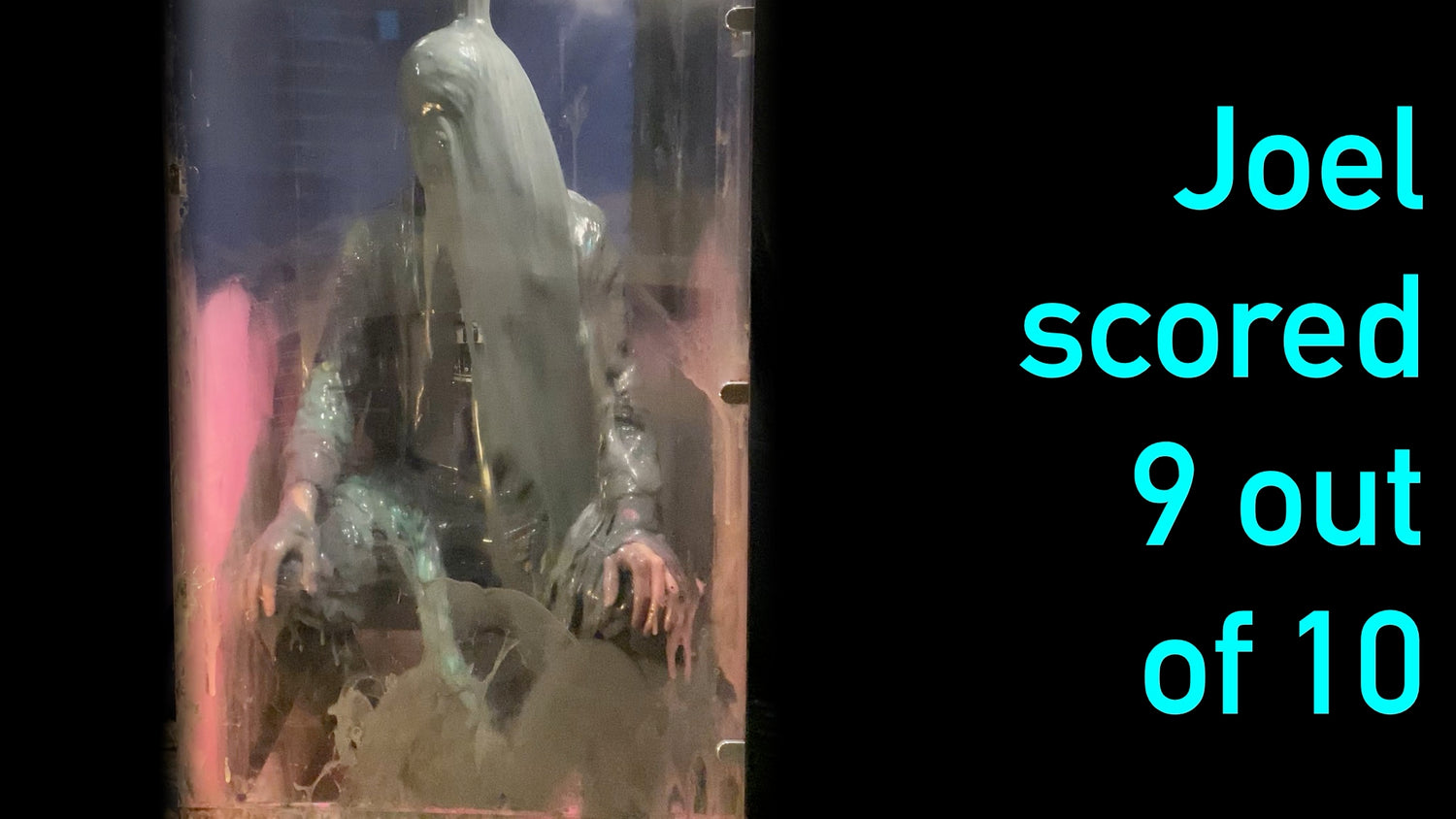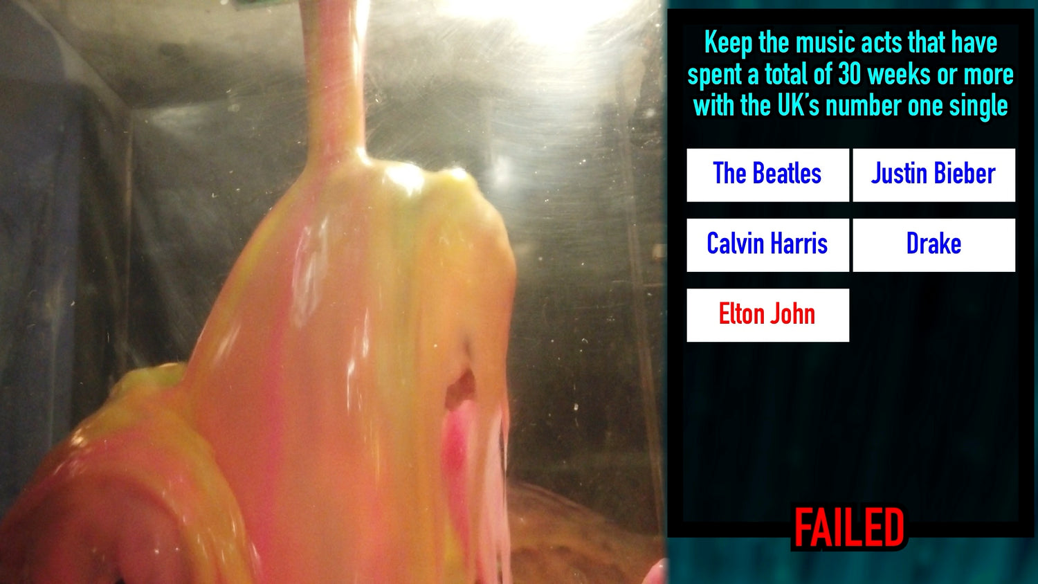 Simple, except that each time Joel fails, a tank of slime is released all over him!