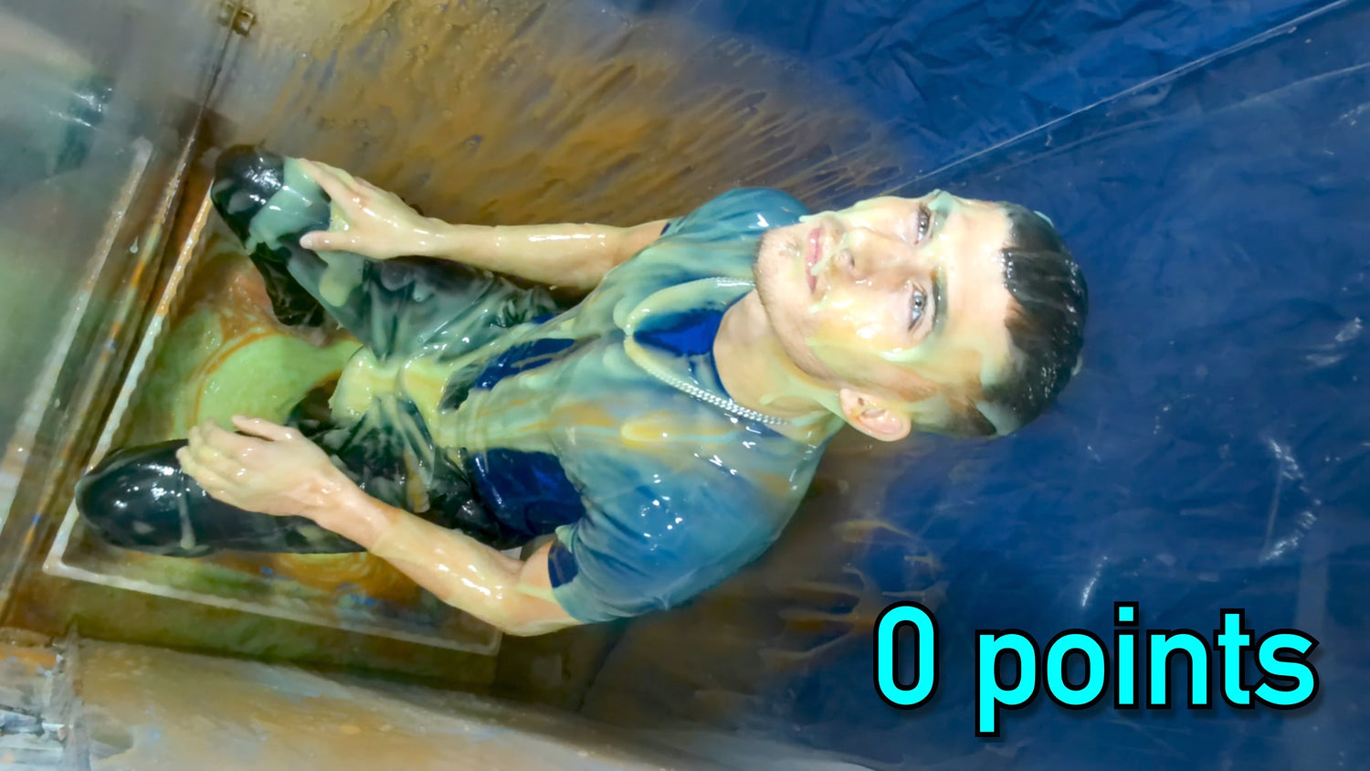 But if he doesn't do well, there could be another 4 tanks of gunging riding on that final Double Drop question. Can he score the elusive 10 out of 10 needed to walk away clean?