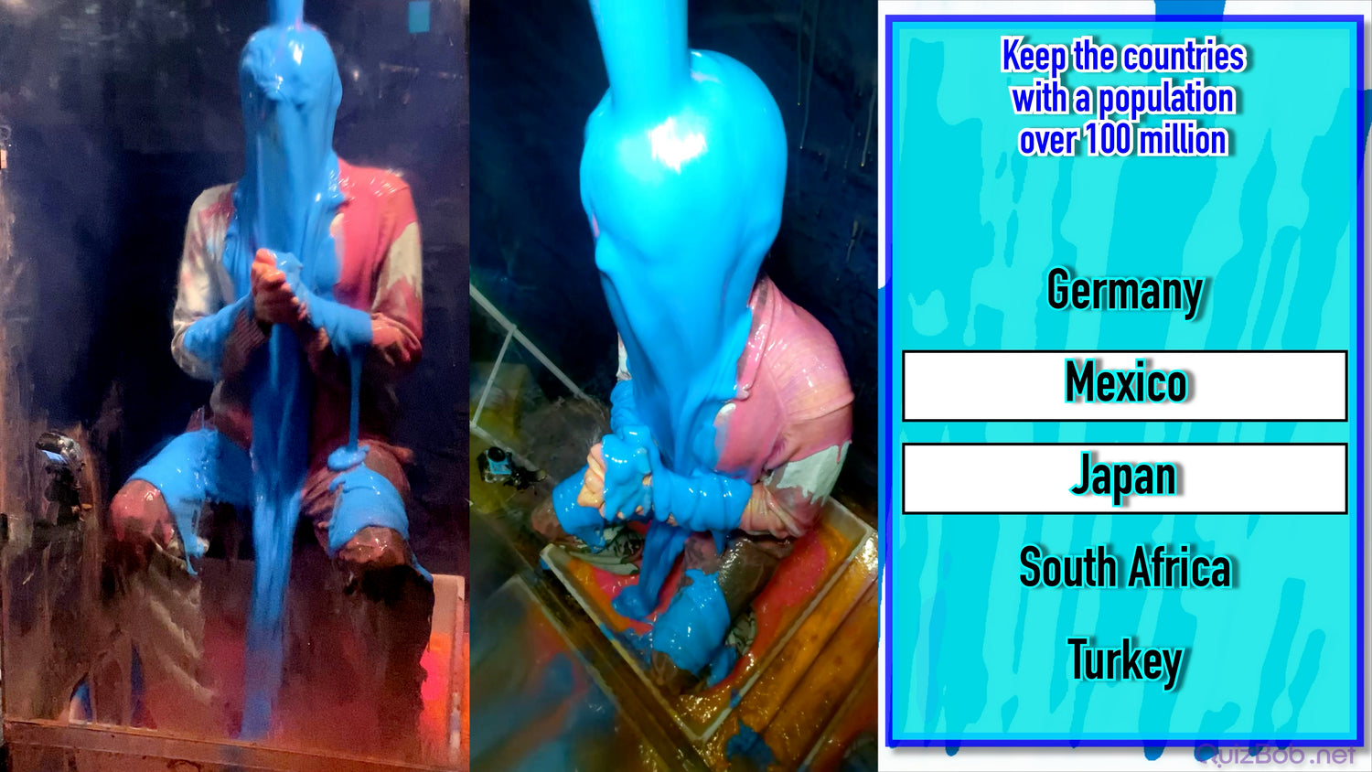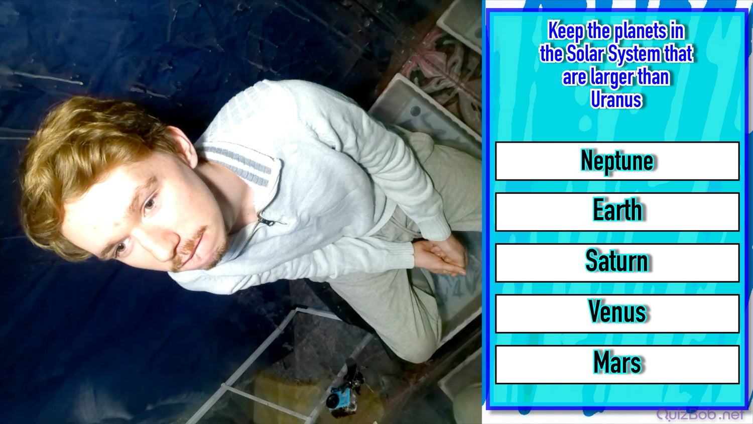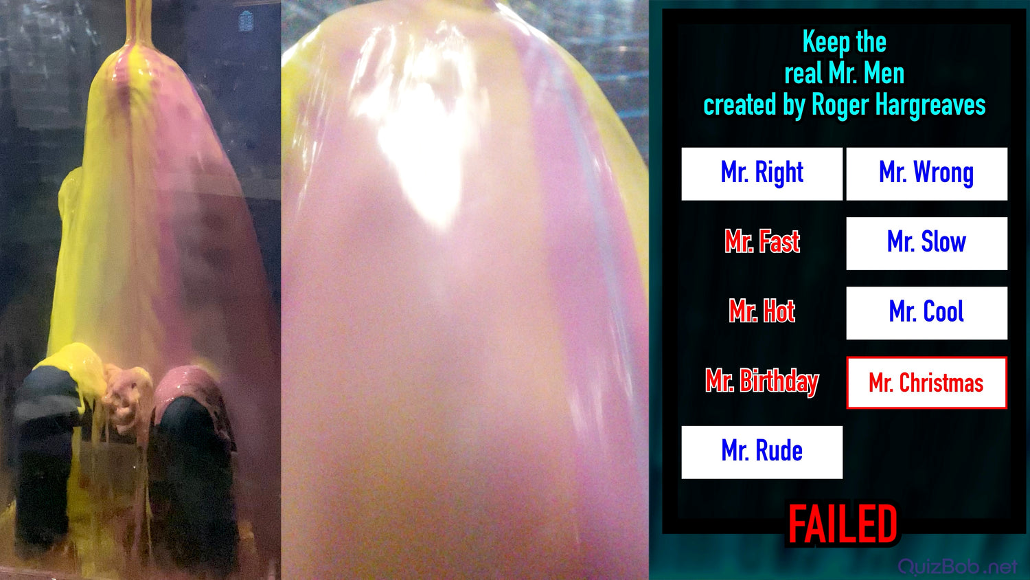 Each time he fails to complete a board in the quiz, not only will he forfeit the point - he'll also have a tank of gunge dropped on him! Fail in the Double Drop final and he'll get even messier...