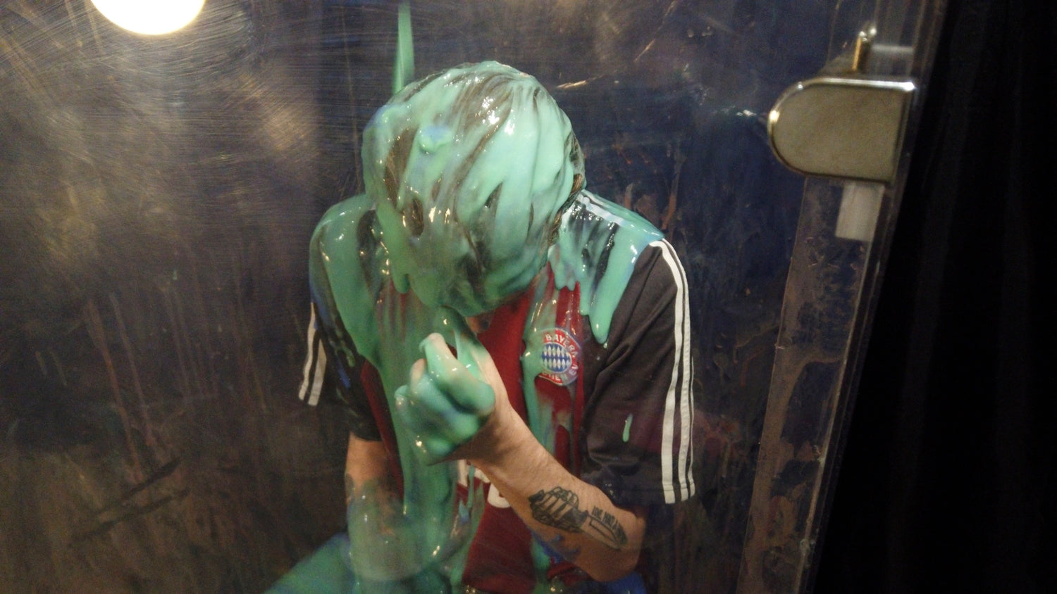 But when you're trapped in the gunge tank with a vat of slime about to drop at the slightest wrong move, can he handle the pressure?