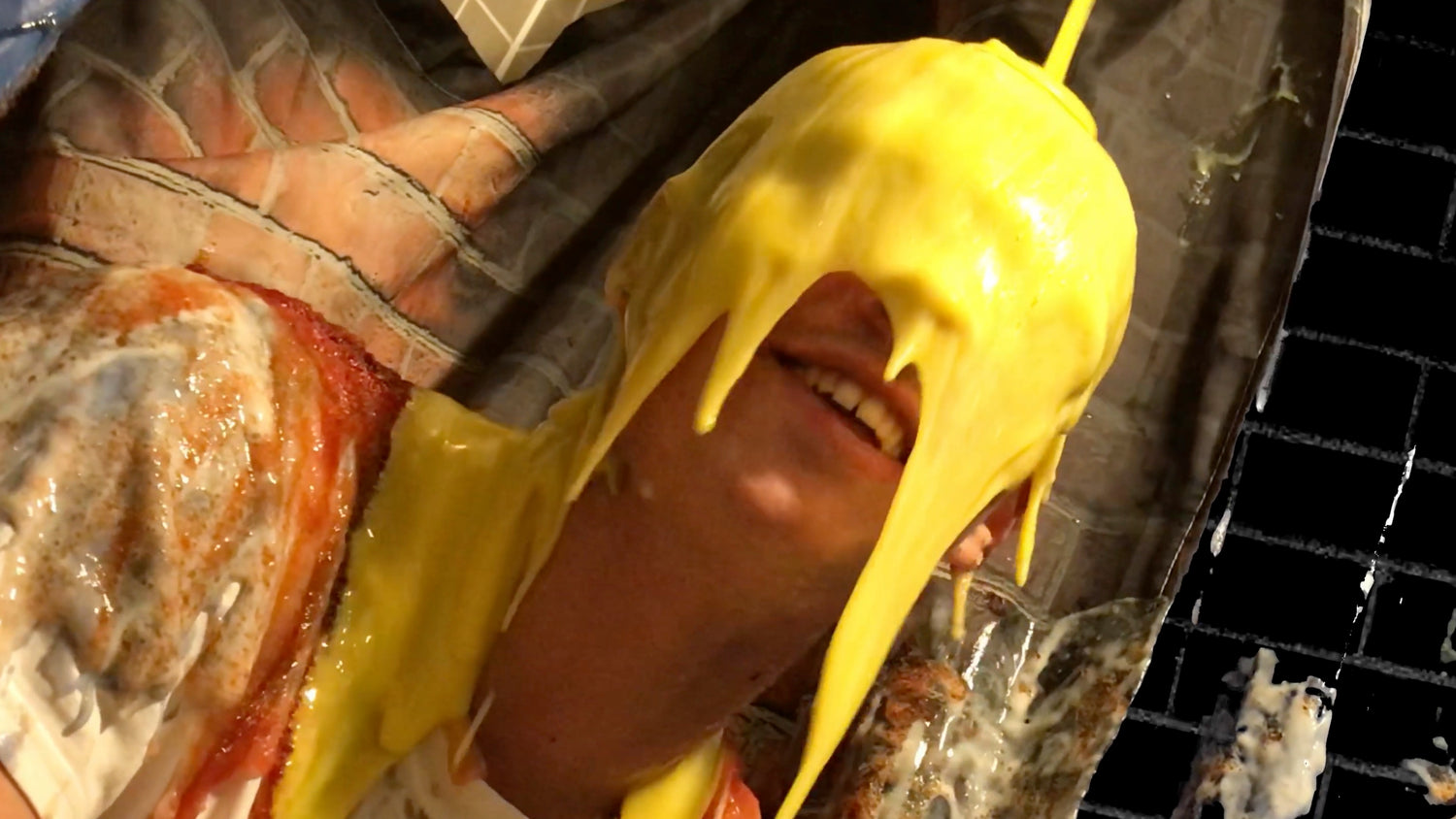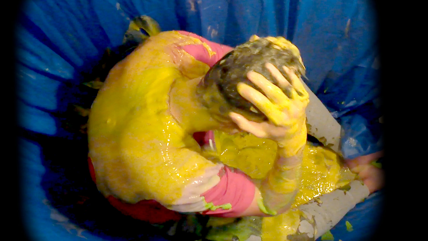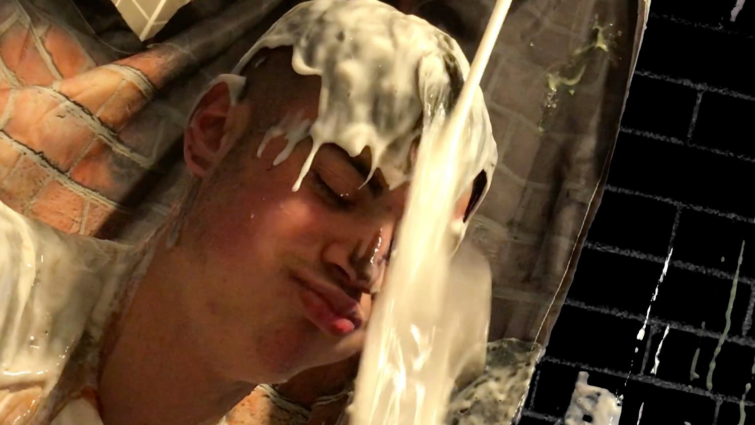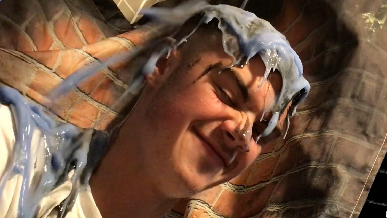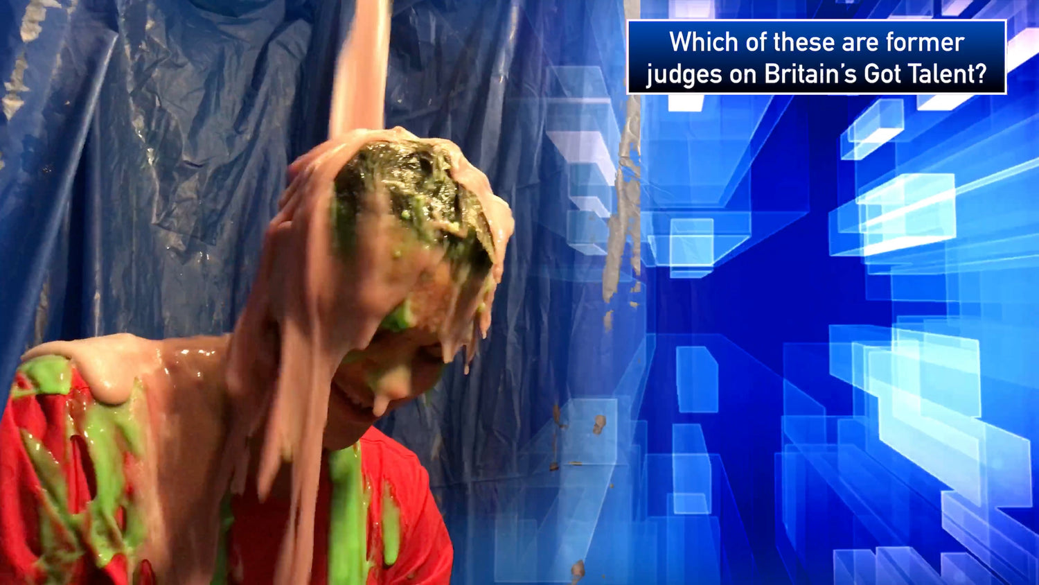 Rob's sporting a rather nice Tommy Hilfiger t-shirt and an impressive quiff when the show starts... How long before they get splattered with gunge?
