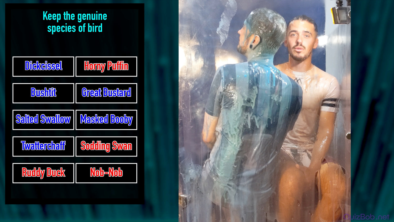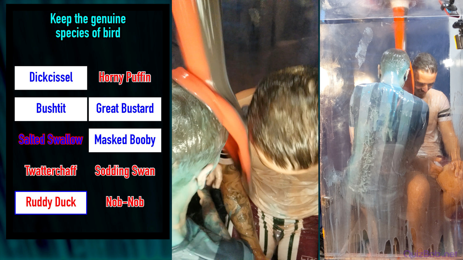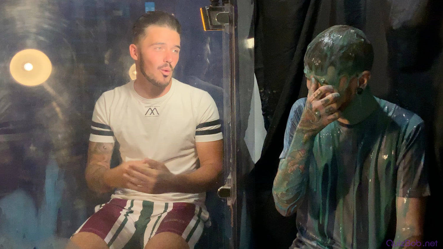 For the final Double Drop question, we squash our two guys inside the gunge tank to face the challenge together. And to face the gunge together if they fail...