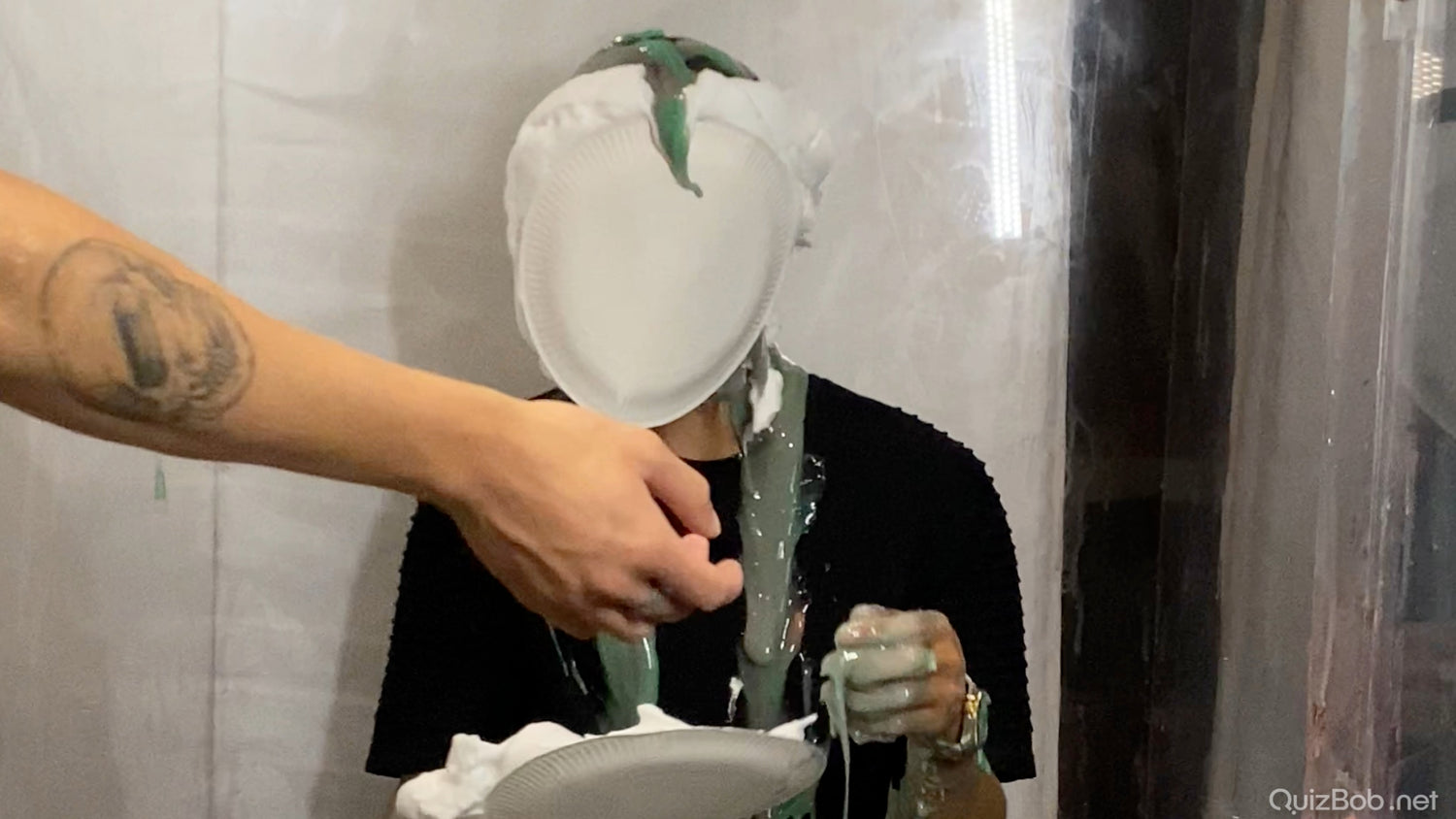 Was wearing his own-brand BLXCK hoody a smart move? It'll show up the brightly coloured gunge well, whatever happens!
