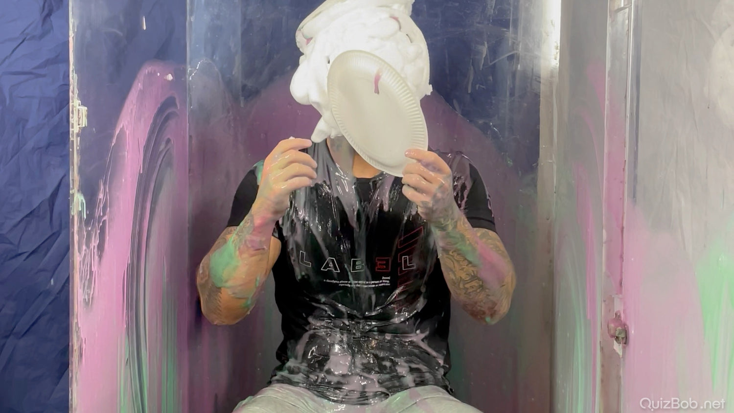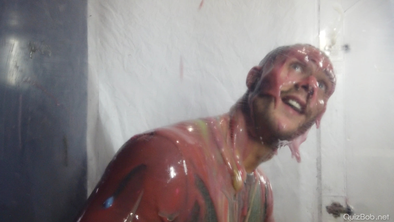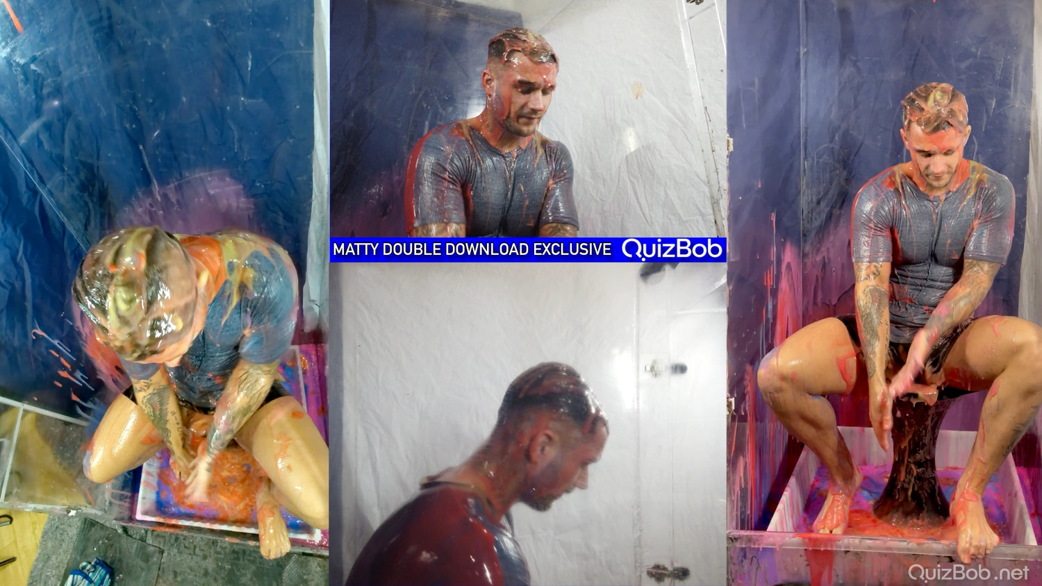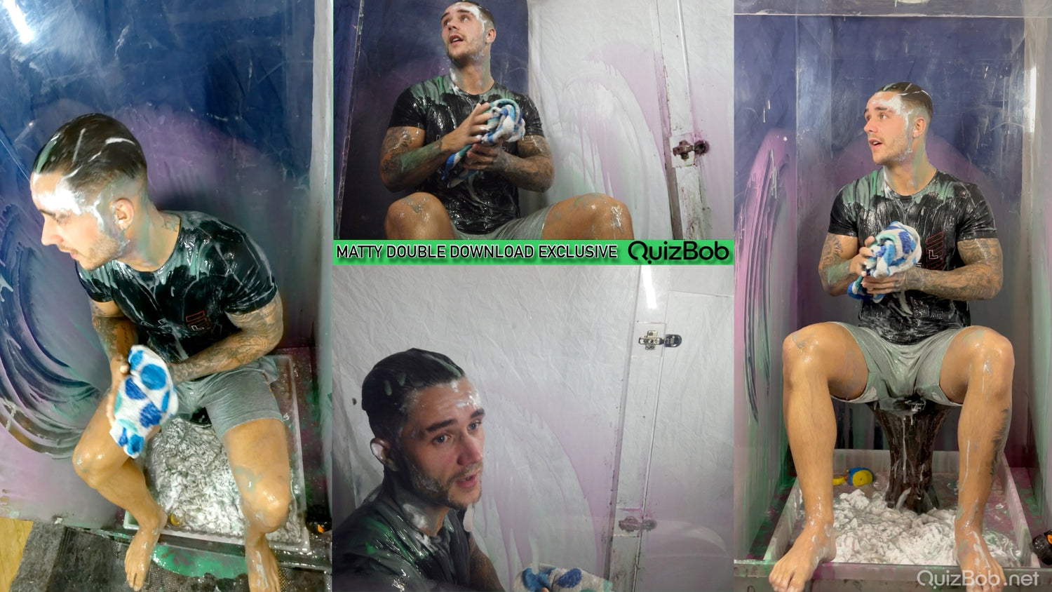 Multiple camera angles show you what happens once all the gunge has dropped and it's time for Matty to wipe himself down!