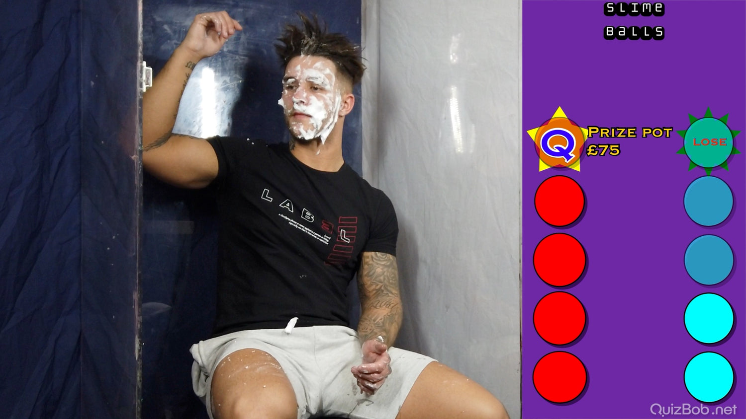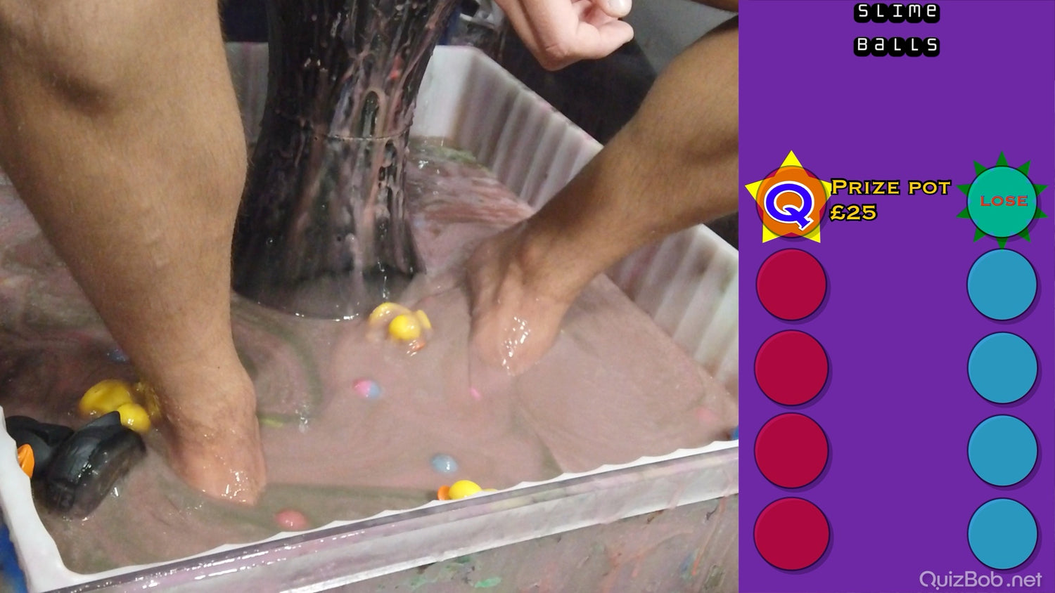 In this cruel quiz, if he finds too many Bad Balls, he won't even get a chance at the Prize Pot Question - it'll just be an instant sliming instead!