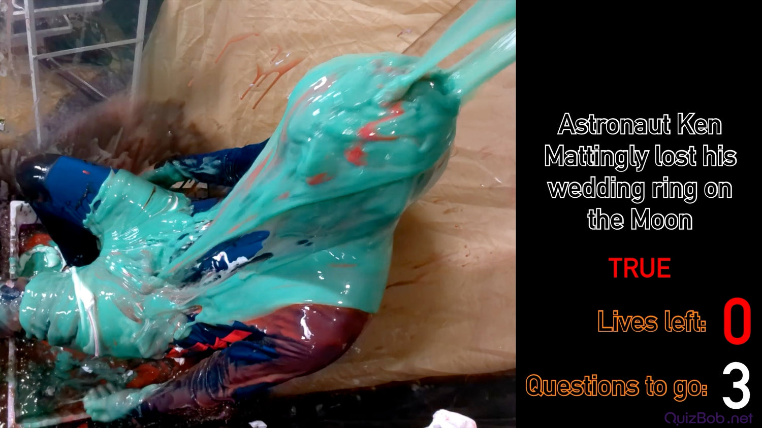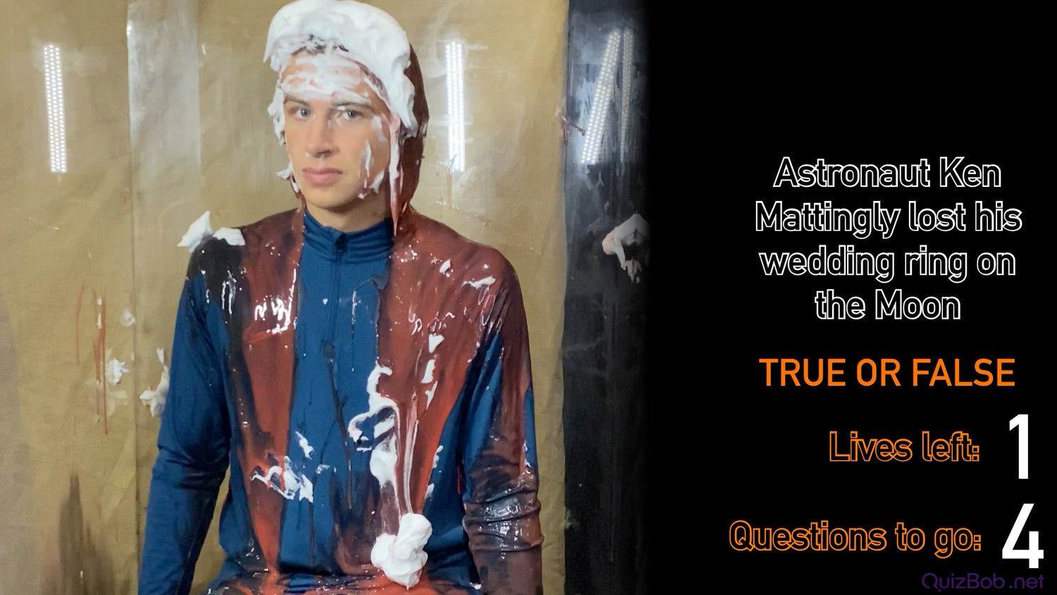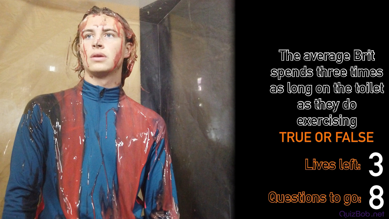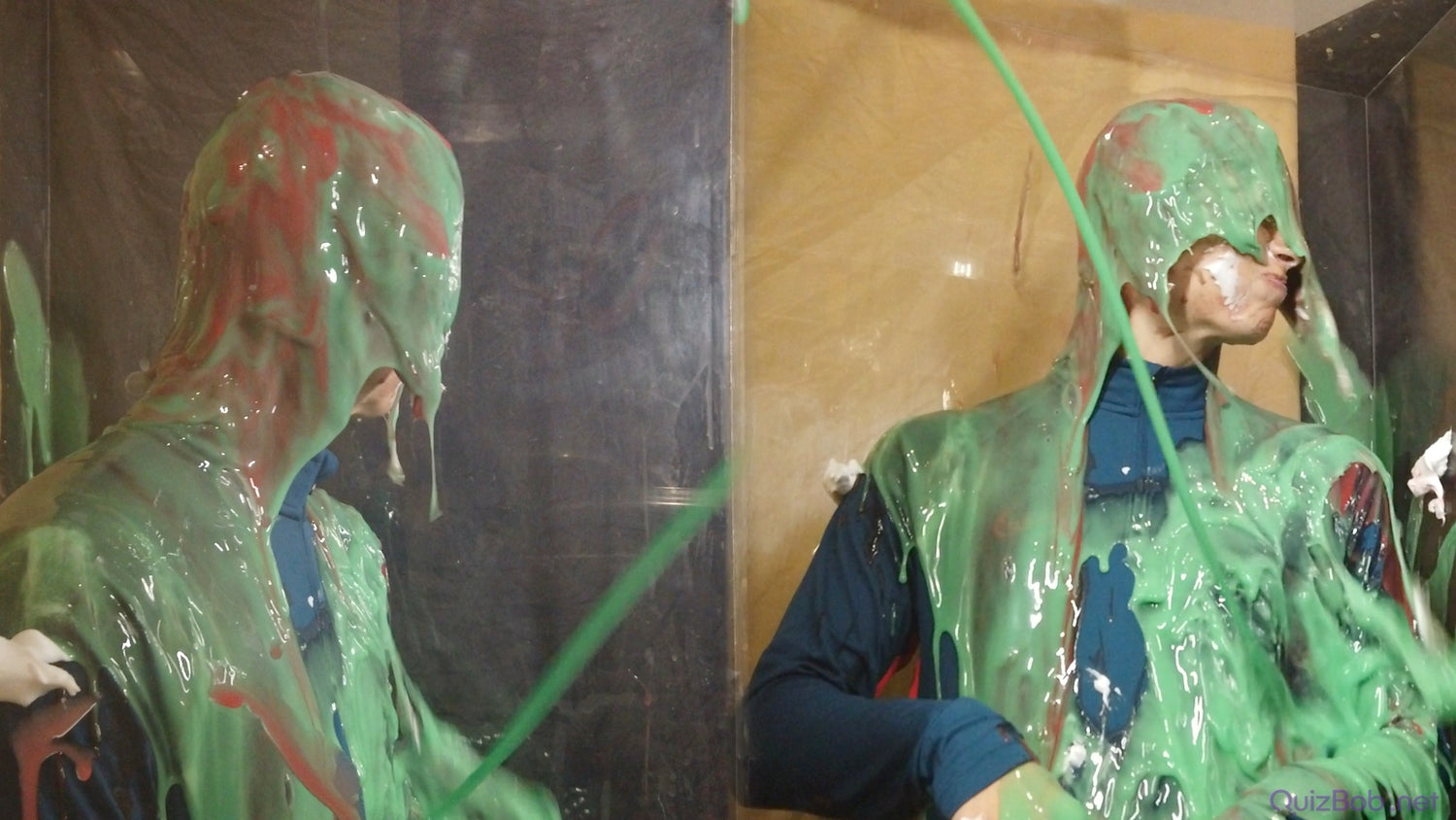 Just when he thought his ordeal was over, Jayden is threatened with the possibility of getting MEGA Mucked Up! A sneaky extra challenge from Quiz Bob! He'll be trying to answer the true or false questions without making too many mistakes or even more slime will be dropping on Jayden from above... and blasted from the front, too!