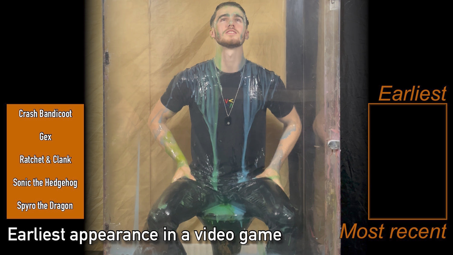Next we move onto the quiz, where our cheerful contestant must sort out the sequences into the correct order. Fail, and more gunge will be released!