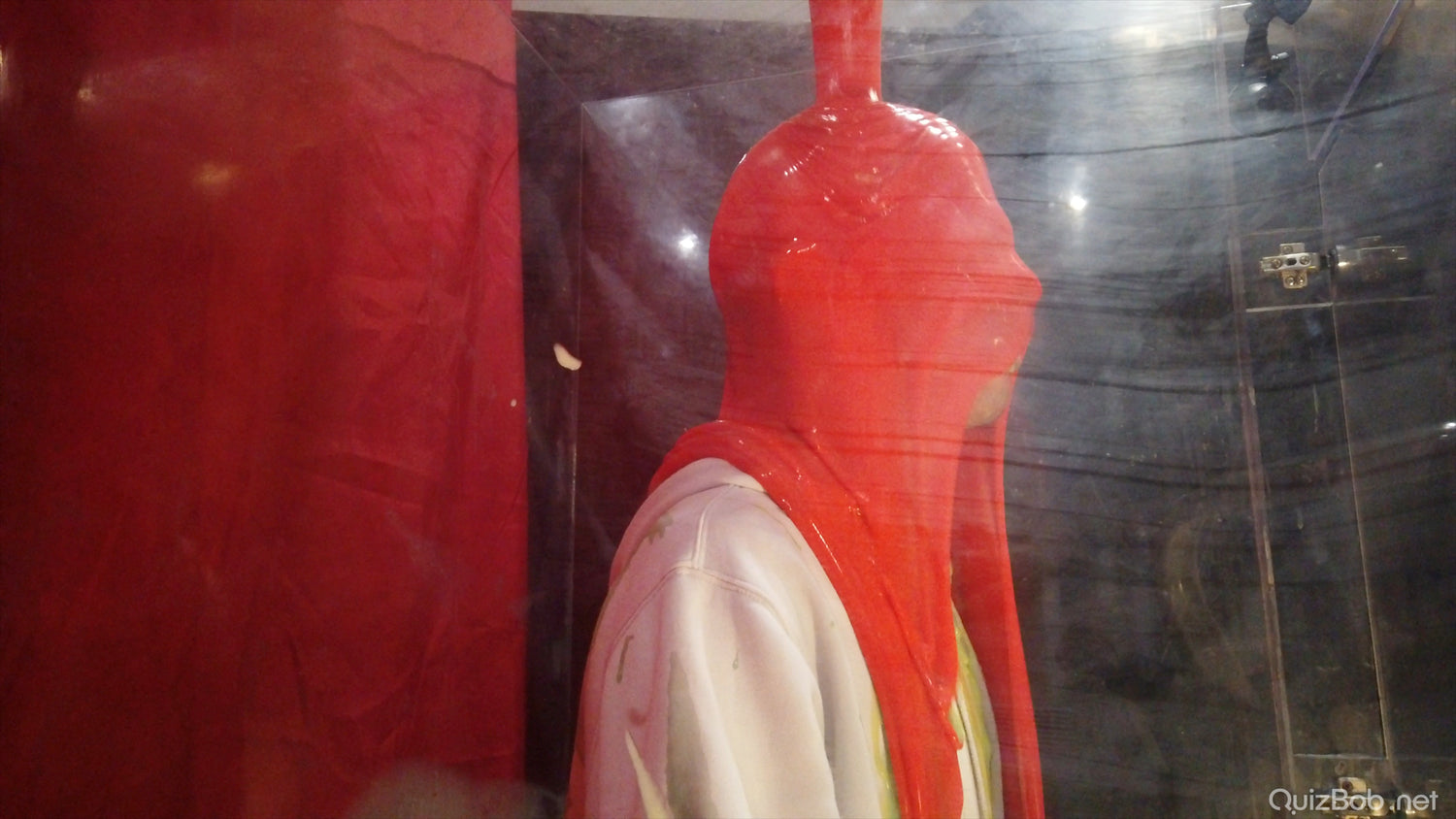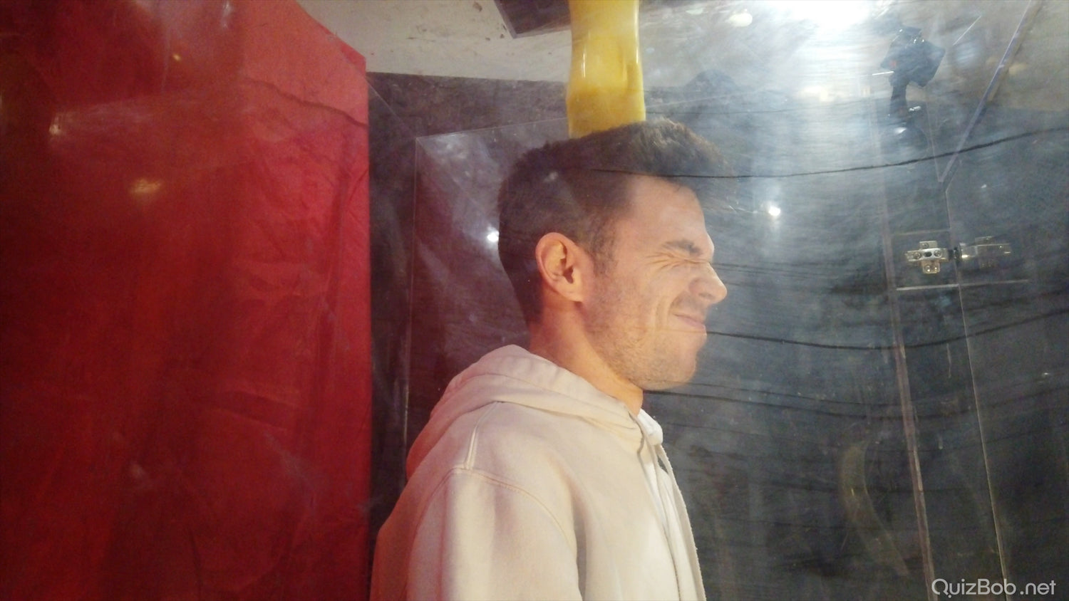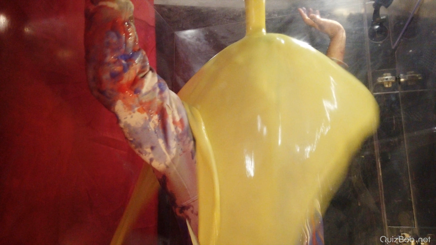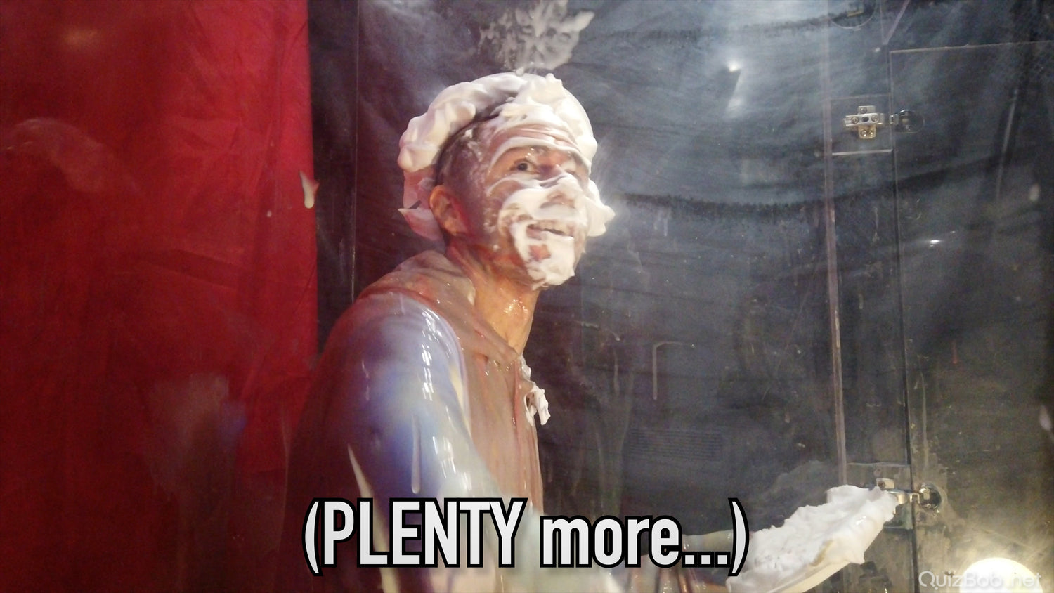 Will he regret wearing his clean white tracksuit? It certainly makes a great blank canvas for colourful slime...