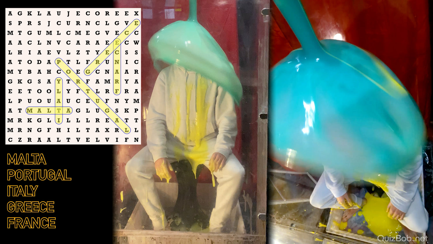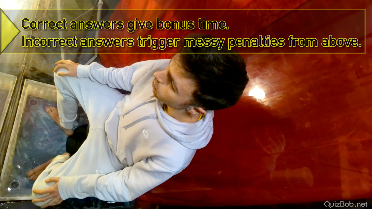Five opportunities to build up time for the final puzzle. Fail at any of the time-builder puzzles and he'll be getting a messy penalty from above. Fail at the final puzzle and the entire Puzzle Funnel will be full of thick grey gunge... before emptying over Nathan below!