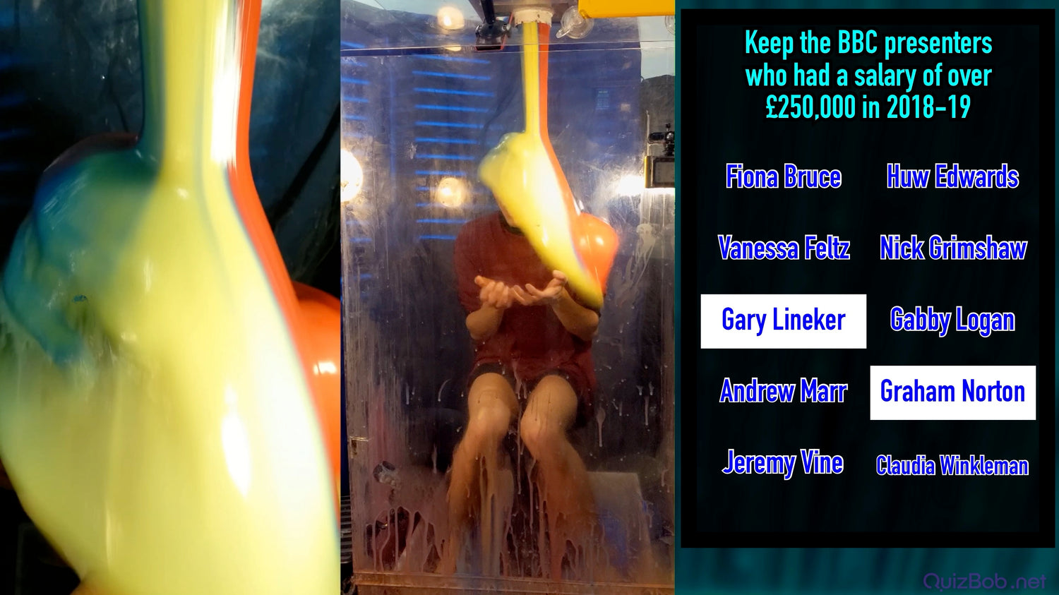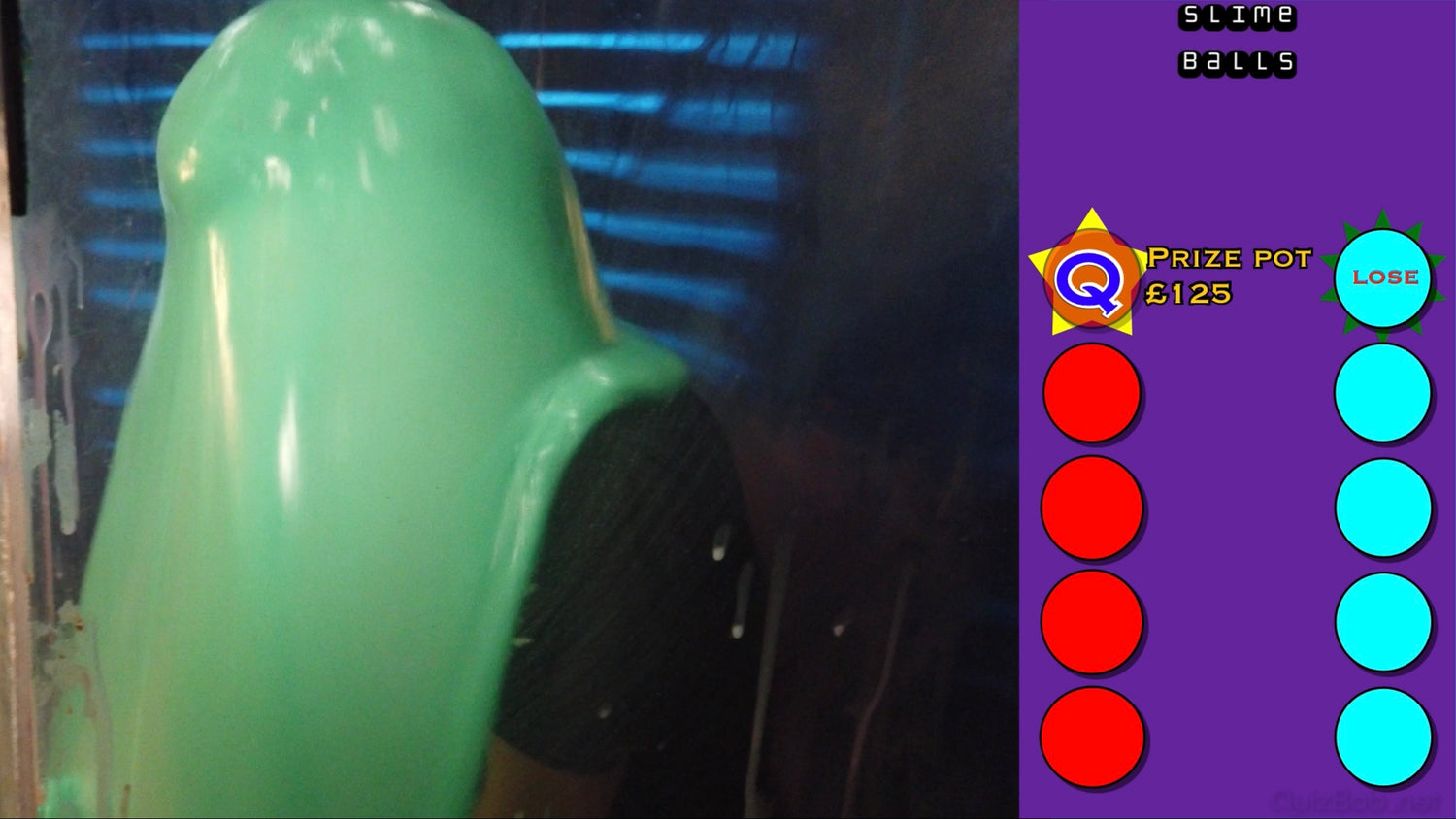 Slime Balls: Rob Bedford is here to plunge his feet into the Mucky Dip below, hoping to find the Good Balls so that the tank of gunge overhead stays sealed...