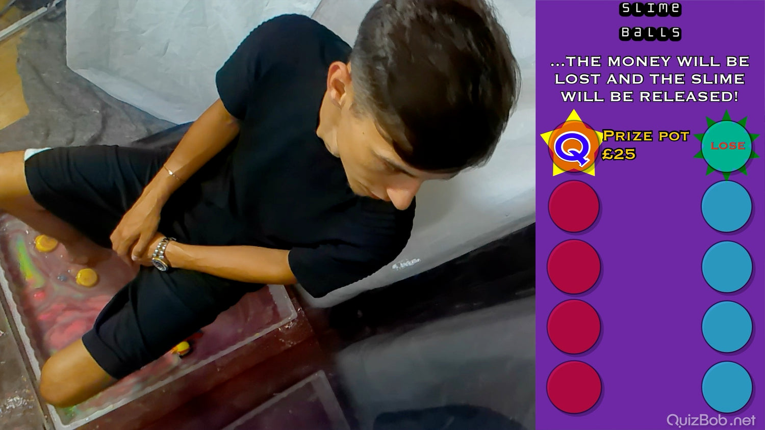 Justin is the quickest player we've ever had at plucking out the Slime Balls with his feet...