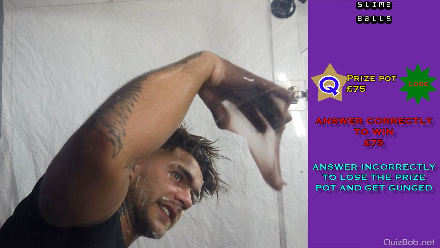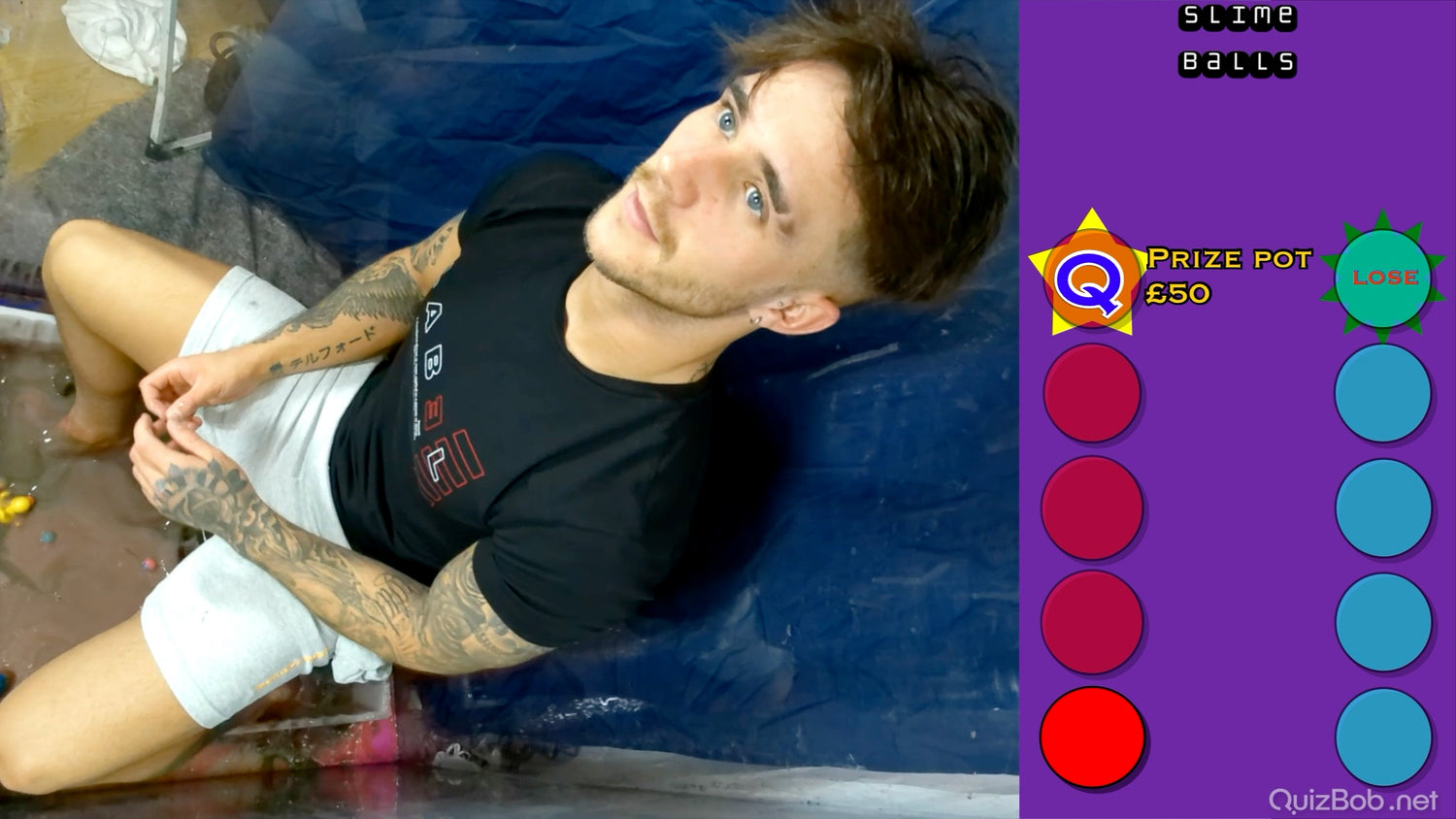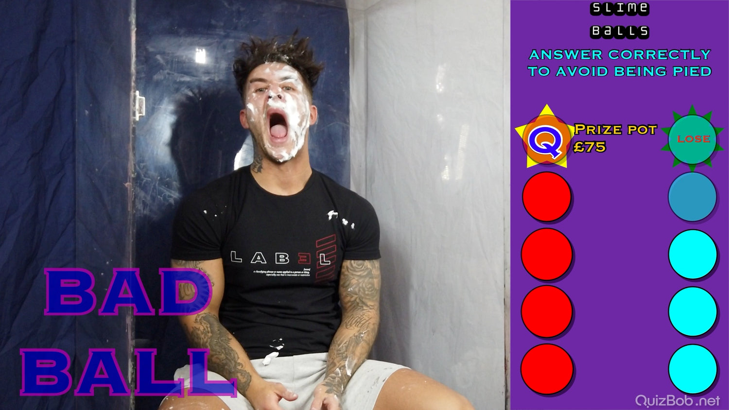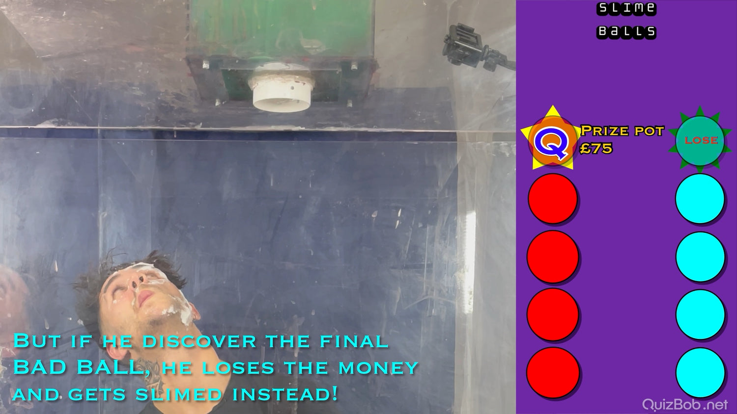 In this cruel quiz, if he finds too many Bad Balls, he won't even get a chance at the Prize Pot Question - it'll just be an instant sliming instead!