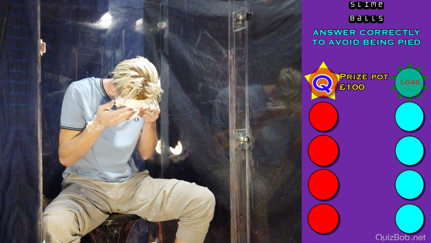 Bad Balls bring the risk of a pie in the face - and if he finds too many, he loses instantly and the bright green slime above him is released!